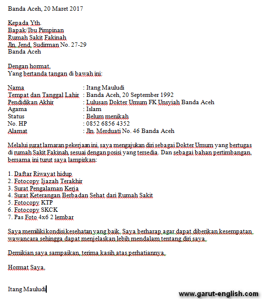 Contoh surat lamaran kerja di rumah sakit adalah merupakan postingan yang akan saya bahas pada kesempatan yang berbahagia ini untuk kamu para. Rekomendasi paling lengkap dan terbaru. Contoh surat lamaran kerja yang ditulis tangan. Akan tetapi, tak sedikit yang sulit membuatnya mengingat banyak faktor yang harus hal ini supaya surat lamaran kerja yang kamu buat bisa menjadi daya tawar dan dilirik perusahaan. Panduan cara membuat surat lamaran kerja surat lamaran kerja ini tentu akan sangat dibutuhkan bagi anda yang akan melamar pekerjaan. Contoh surat lamaran kerja di rumah sakit sebagai perawat. 3.1 tips melamar kerja yang baik. Contoh surat lamaran kerja rumah sakit fresh graduate. Bagi yang butuh contoh surat lamaran kerja perawat, di artikel ini kami akan sharing kepada anda. Jika diminta surat lamaran kerja dalam bentuk tulis tangan saat melamar pekerjaan di rumah sakit, contoh ini bisa menjadi rujukan anda. Contoh surat lamaran pekerjaan di rumah sakit. Melalui surat lamaran ini saya mengajukan diri untuk melamar kerja di rumah sakit indah sejahtera yang bapak/ibu pimpin sebagai dokter spesialis. Contoh surat lamaran kerja sangat dibutuhkan bagi kamu yang ingin mendapatkan pekerjaan terutama di rumah sakit.